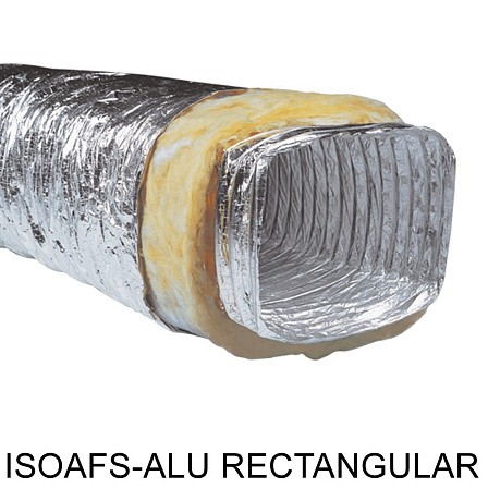 ISOAFS-ALU RECTANGULAR представляют собой теплоизолированные гибкие воздуховоды алюминиевые прямоугольные, выполненные из нескольких слоев алюминия и полиэстера, изолированные стекловолокном и алюминиевым паронепроницаемым слоем, а также усилены жестким стальным каркасом из проволоки.