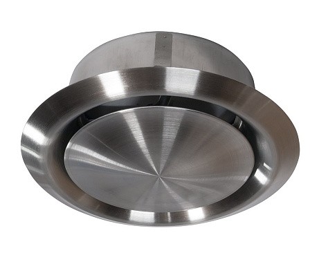 Диффузор изготовлен из нержавеющей стали, и представляет собой потолочный воздухораспределительный элемент.