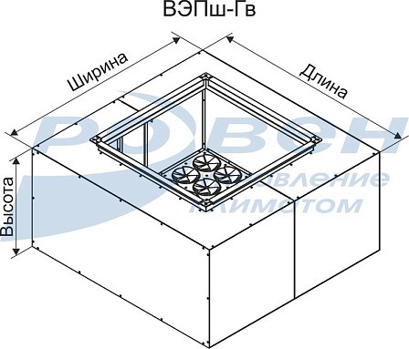 ВЭПш Гв - воздухораспределители потолочные с вертикальным подводом воздуха через воздуховод прямоугольного сечения. Изготавливаются из оцинкованной стали.