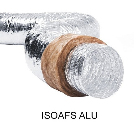 ISOAFS-ALU SHINE ECOSOFT представляют собой гибкие теплоизолированные герметичные воздуховоды, выполненные из нескольких слоев металлизированного полиэстера и алюминиевой фольги (гибкий алюминиевый воздуховод), со спиральным каркасом из стальной проволоки, покрытой изоляцией из стекловолокна. Внешний чехол гибкого воздуховода выполнен из паронепроницаемой алюминиевой фольги.